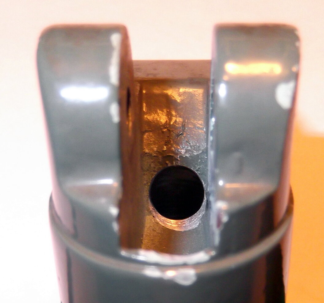 Wichtig ist das genaue ausmessen, denn es musste ein Loch in den Aufnahmebereich des Kopfes gebohrt werden, genauer der Bereich, in dem nachher der Ständer aufgeschraubt wird.