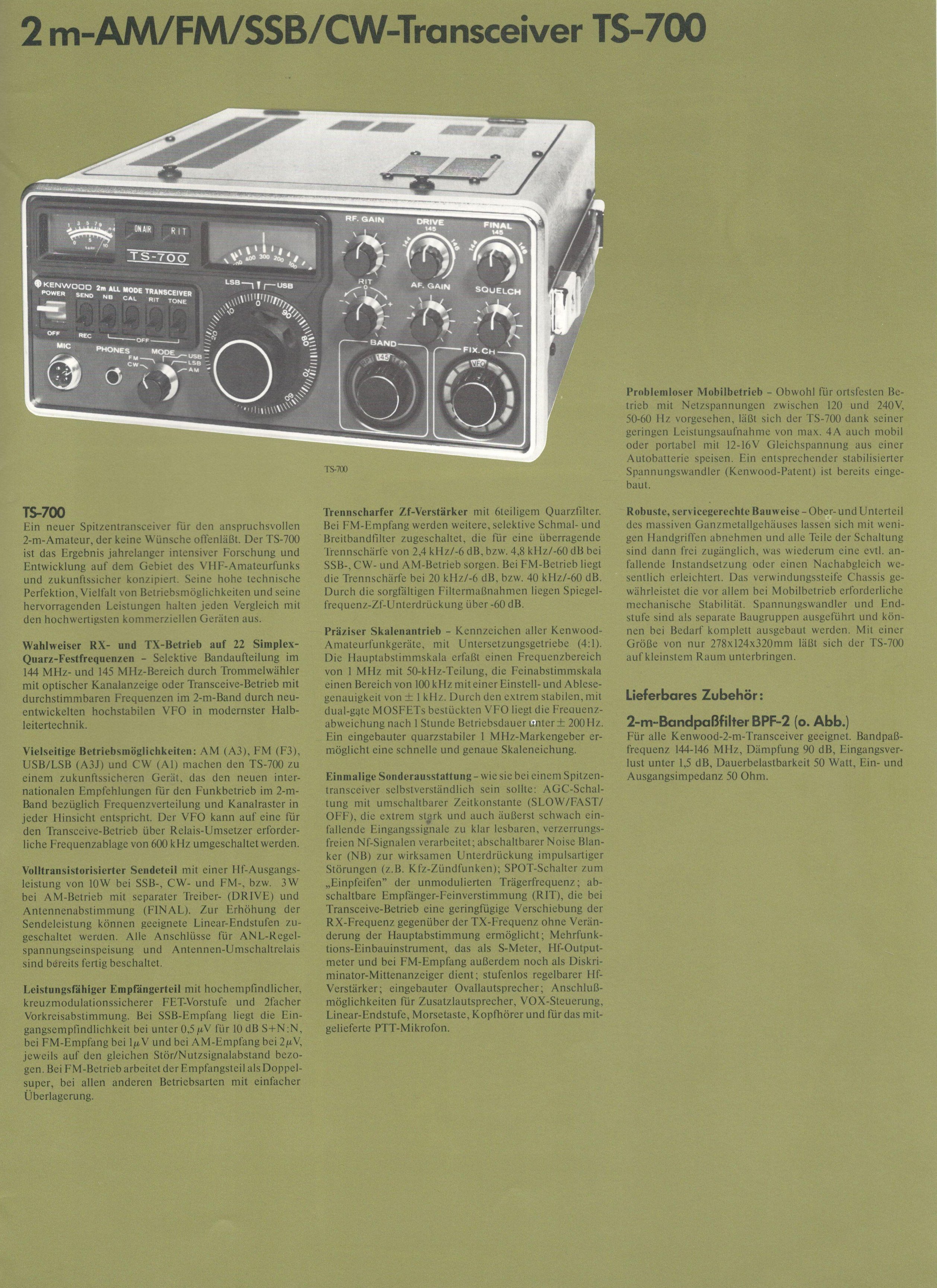 Dokumentation zum Amateurfunkgerät KENWOOD TS-700