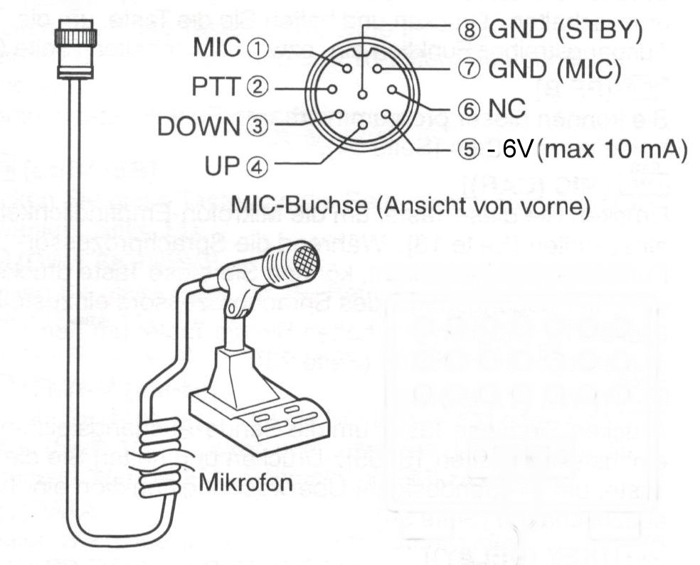 - Die Mikrofonbuchse ist 6polig. Der Verdacht besteht, dass eventuell eine UP/DOWN-Funktion über ein passendes Mikrofon möglich wäre
