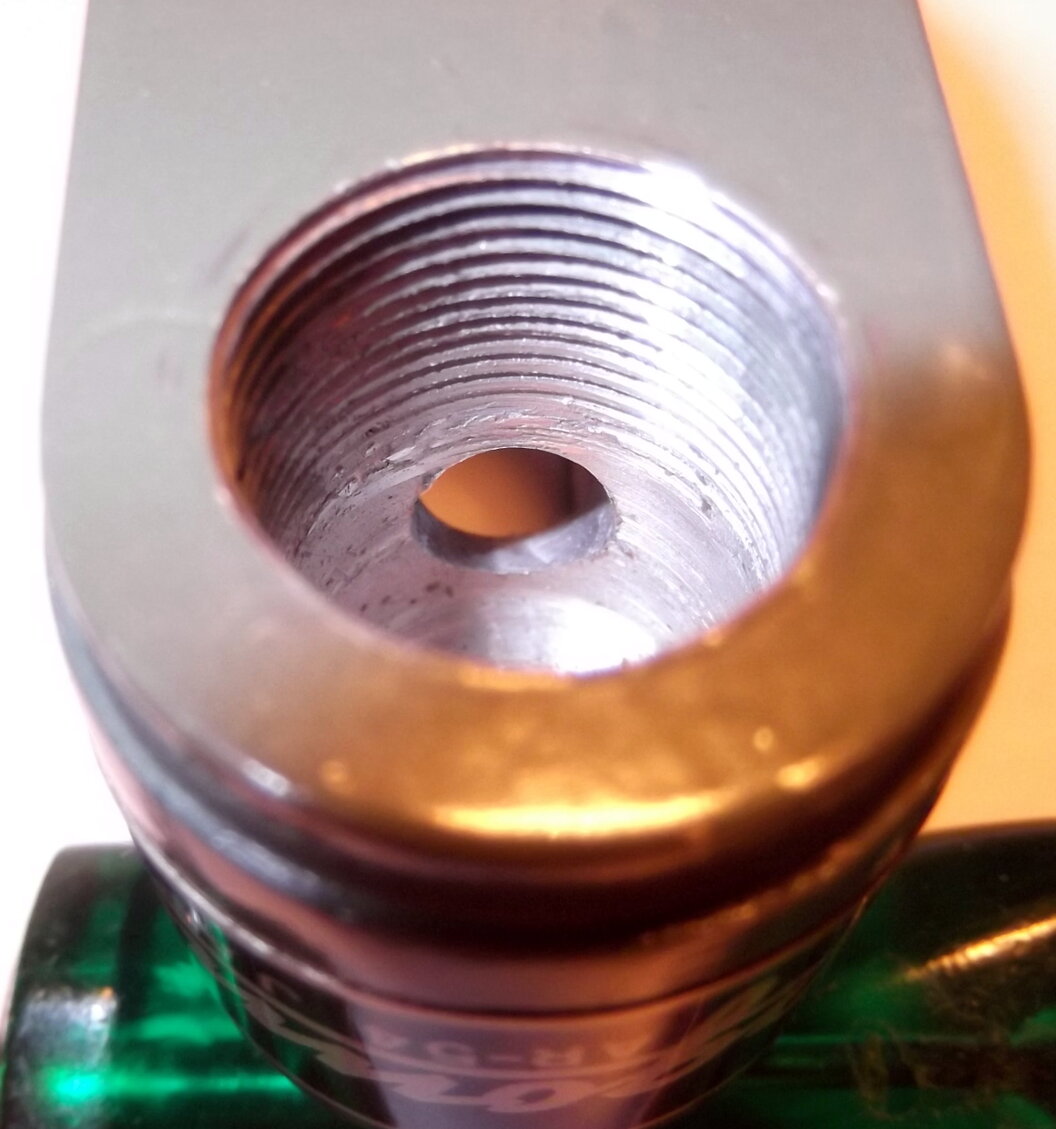 Viel wichtiger war, dass man oberhalb der letzten Gewinderille herauskommt, denn sonst kann der Ständer nicht aufgeschraubt werden.