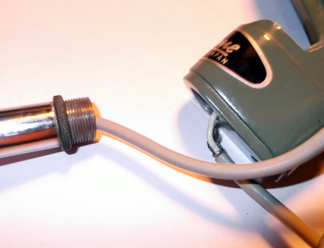 Die Beschaffung eines alten Tasters war doch etwas schwieriger als gedacht, so dass vorerst ein Taster neueren Datums eingebaut wird. Er schließt auch nur den Kontakt zwischen PTT und MASSE. Das eigentliche Mikrofonkabel wird noch gekauft. Mal sehen was der Teilemarkt im Vintage Bereich hergibt.