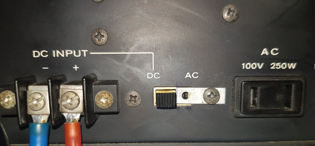 Wie bereits erwähnt, wird die TRIO HR-9 Console mit 12Volt oder 100Volt betrieben. Damit es zu keiner Fehlbedienung durch Fremdpersonen kommen kann, habe ich den DC/AC Schalter mit einem Blech fixiert, so das die Station nur mit 12 Volt betrieben werden kann. Eine 12Volt Versorgungsleitung wurde auch angeschlossen.