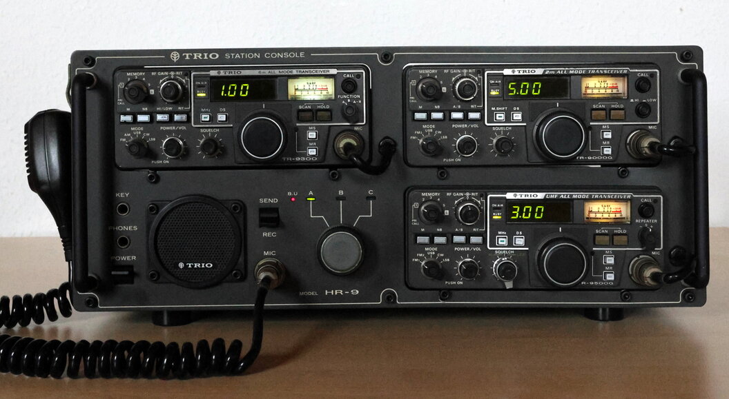 Die Konsole HR-9 der Marke TRIO, ist unter Sammlern etwas ganz besonderes. Sie beinhaltet drei Geräte in einem. Es ist meistens ein TR-9000G, ein TR-9500G und ein TR-9300. Natürlich können auch andere Geräte der TR-9000er Serie verbaut werden.