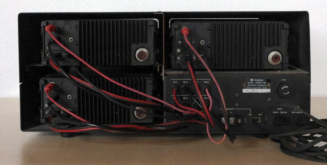 Warum sollte dann ein damaliger Importeur das Produkt anbieten? Nun ist es aber so, dass die TRIO HR-9 Stationskonsole auch mit 12 Volt betrieben werden kann. Durch einen Umschalter auf der Rückseite von AC auf DC ist das möglich. Die 12Volt Anschlüsse sind auch vorhanden. Die Konsole wurde aber für den stationären Betrieb konzipiert und da war damals eher der Netzbetrieb vorrangig. Die heutigen Transceiver sind in der Masse eher auf 12Volt Versorgung mittels externen Netzteiles ausgelegt.