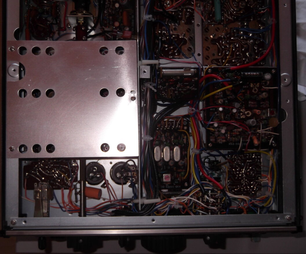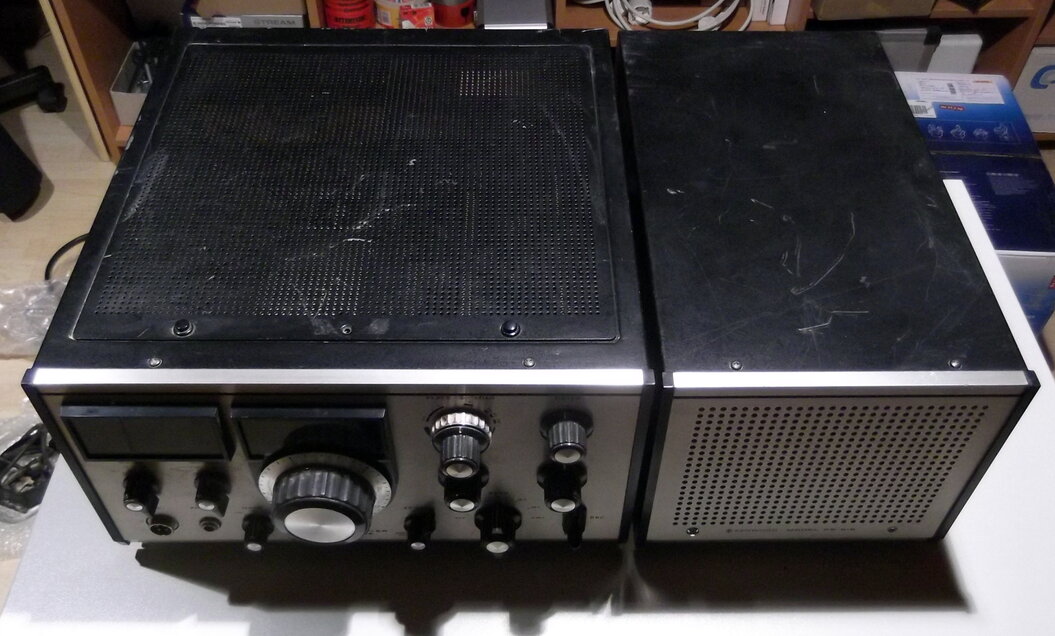 Fertig. Reinigung abgeschlossen und Gehäuse bearbeitet. Der Empfänger läuft nun bestens. Es gibt auch keine krachenden Potis mehr. Natürlich sind hier und da noch ein paar kleine Kratzer auf den Aluminiumfronten zu sehen. Das darf auch sein, denn das Alter sollte zum Gerät passen. Wir Menschen bekommen im Alter auch Falten. Die Bedienknöpfe wurden abgebaut und einzeln gereinigt. Die dreckigen Frontplatten wurden auch mehreren Reinigungsgängen unterzogen. Das leicht schief eingebaute S-Meter sitzt nun richtig. Das Gerät wurde einem mehrstündigen Empfangstest unterzogen und hat jetzt keine Ausfälle. Der Sendetest steht noch aus. Ich gehe auch noch von einem Abgleich aus.