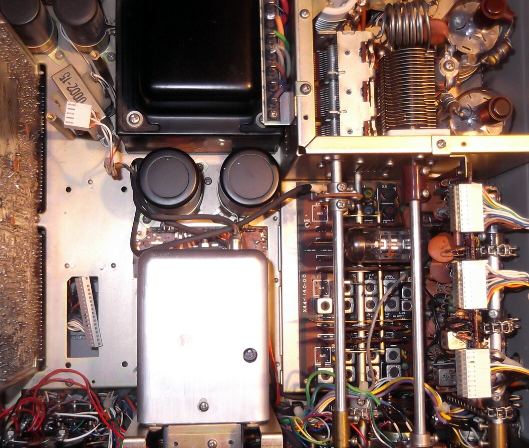 Die derzeitige Arbeit ist die, die Kontakte, die Frontplatte sowie die Bedienelemente und das Gehäuse zu reinigen. Die Farbbeschädigungen an der Frontplatte zu beseitigen wird dann der nächste Arbeitsschritt sein. Zwischenzeitlich geht es auch an die inneren Werte. So habe ich eine Sichtprüfung durchgeführt, ob es z.B. aufgeblasene Kondensatoren gibt, was bei dem Alter des Gerätes, wir sprechen hier von einem Herstellungszeitraum von 1976 - 1979, durchaus sein kann. Der damalige Verkaufspreis betrug 2.950,00 DM (Quelle Richter&Co sowie Ing. Bauer beide von 1977). Umgerechnet entspricht das heute 1.508,31 EURO. Die Empfangsprüfung hat er schon bestanden, allerdings stellte ich da auch eine Frequenzabweichung fest. Die Sendeprüfung steht noch aus und letztendlich dann auch ein Abgleich. Abgesehen davon fehlt noch die Gehäuseabdeckung der Röhren. Diese muss auch noch beschafft werden.