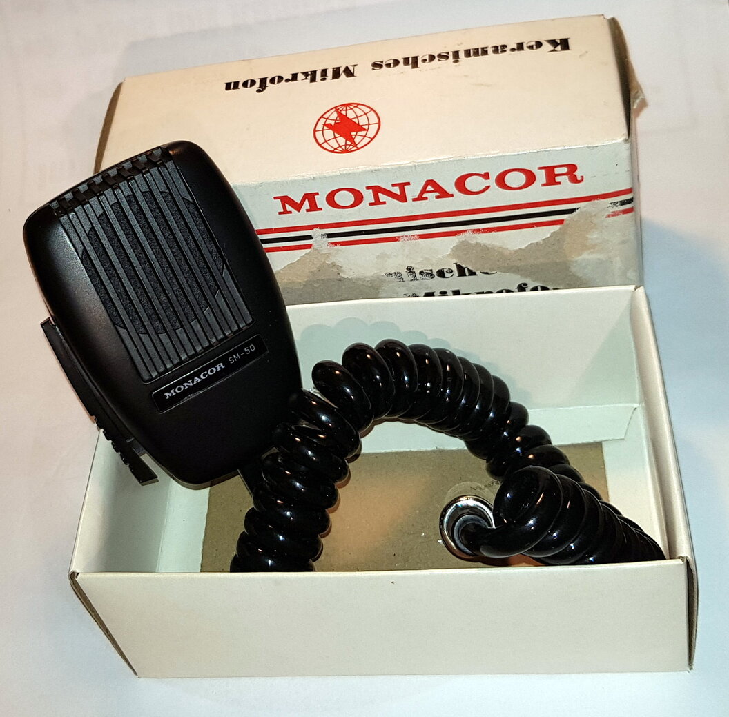 MONACOR, ein Unternehmen aus Deutschland das für hochwertige Studiotechnik wie z.B. Beschallungs- und Audiotechnik weltbekannt ist, hat in den jüngeren Jahren der Firmengeschichte auch Mikrofone für Funkgeräte produziert. Diese sind sehr selten und wenn, dann meistens nur im desolaten Zustand zu finden. Mit etwas Glück fand ich im WEB ein Angebot eines Mikrofons, das MONACOR Handmikrofon SM-50.