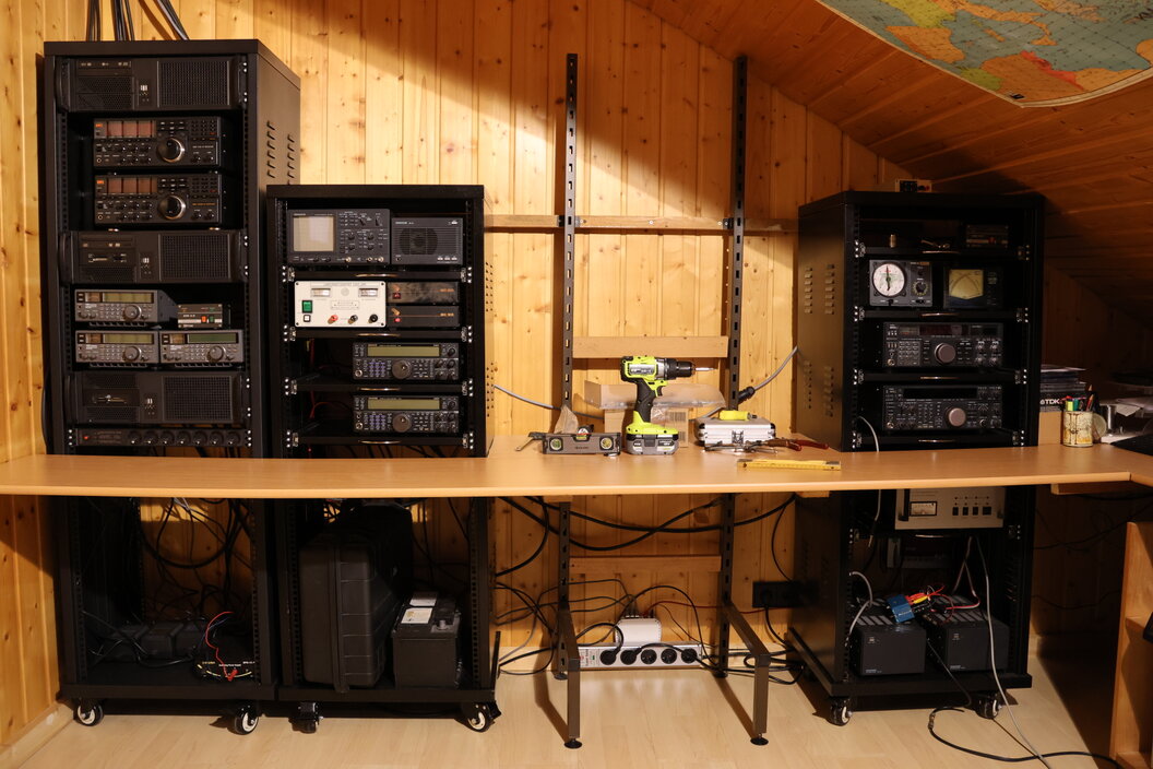 Alle funk- und computertechnischen Komponenten sollten in Racks verbaut werden. Das Kabelwirrwar der letzte Jahre sollte gelöst werden. Diverse Mehrfachsteckdosenleisten mit Überspannungsschutz und Netzfilter wurden angeschafft und in die Racks, meistens rückwertig, verbaut. Generelle Trennung der Stromversorgung, so dass nicht Netzteile und Computer auf einer Steckdosenleiste hängen wurden vermieden und auch die Verlegung der Kabel sollte nun deutlich ordentlicher und störungsfreier von statten gehen.