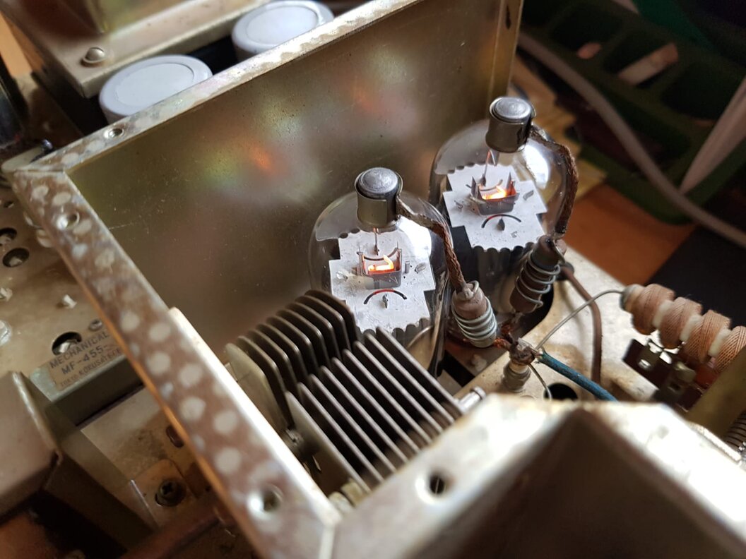 Seit Sonntag den 18. August läuft der RX jeden Abend mehrere Stunden. Die Empfangsantenne ist eine Loop - nicht abgestimmt. Die Signale sind ordentlich, der Betrieb erfordert Fingerspitzengefühl. Das Gerät ist innen weitgehend gereinigt. Die Frontplatte ist nun auch sauber und die Knöpfe wurden entfernt, gereinigt und wieder aufgesetzt. Kontakte überprüft und gereinigt. Eine Liste der eingebauten Quarze wurde erstellt. Über die Serienbestückung hinaus verfügt der RX über weitere Bänder - respektive deren Quarze. Derzeit warte ich auf ein Messgerät das in den nächsten Wochen kommen soll, damit ich TX und RX zusammengeschaltet an einem Dummy auf Funktion überprüfen kann. Eine Liste mit diversen zukünftigen Restaurationsmaßnahmen wurde schon gedanklich erstellt. Der Umfang ist allerdings überschaubar. Der zeitliche Rahmen auf mehrere Jahre angesetzt, da diverse Teile nicht täglich im WEB angeboten werden.
