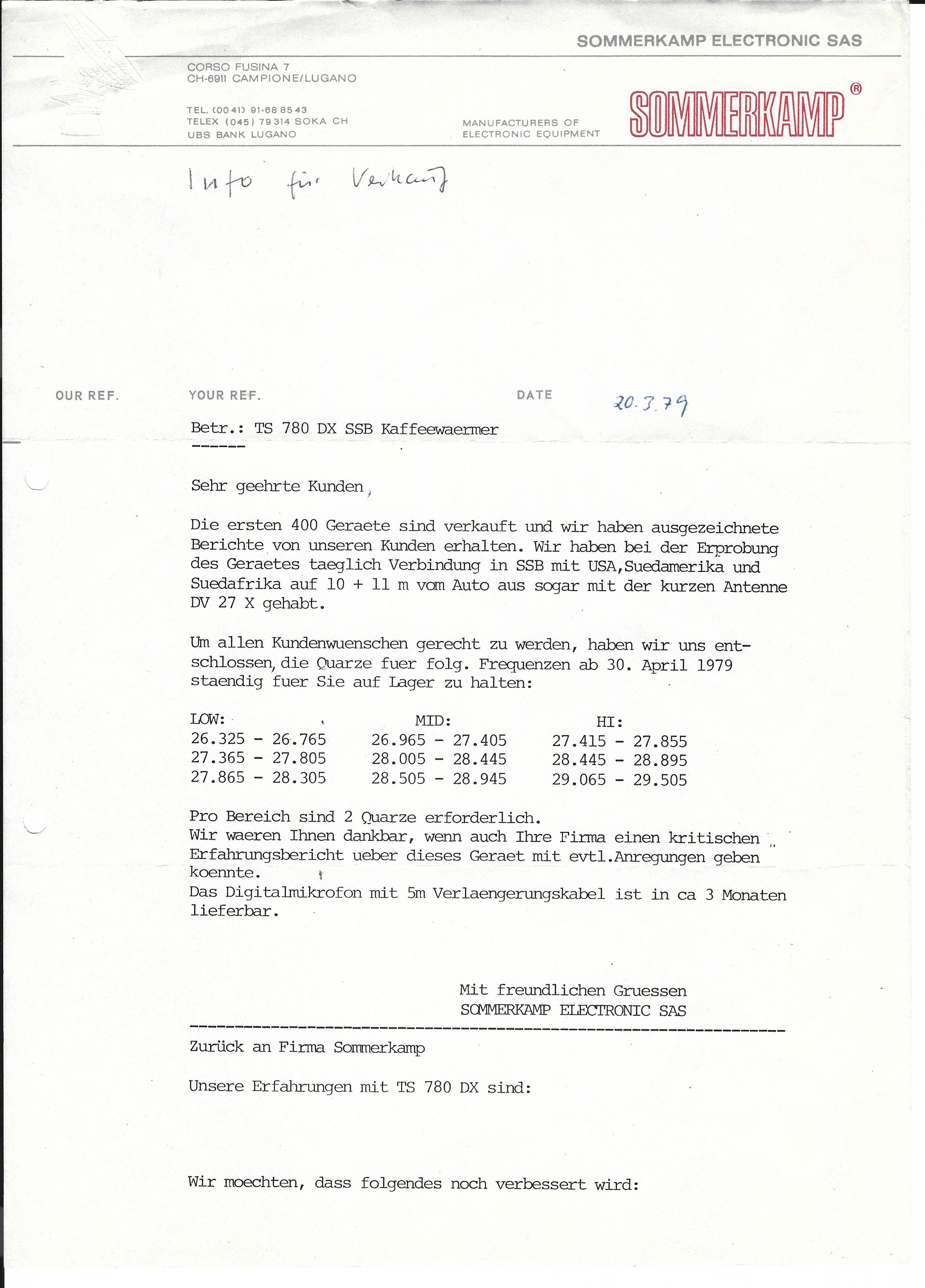 Damals war ich für Radio Shack USA fur CB, Scanner und Kurzwellenempfänger in DL zuständig und wollte mit Sommerkamp den Geschäftsbereich erweitern bzw. umgekehrt.