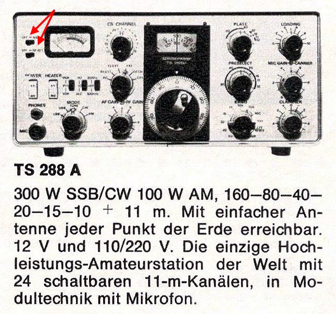 Die Gerätebezeichnung TS-288A ist bei allen Abbildungen im WEB weiß, bei dem mir vorliegenden Modell ist sie rot und es ist erkennbar, dass nicht farblich nachgearbeitet wurde.
